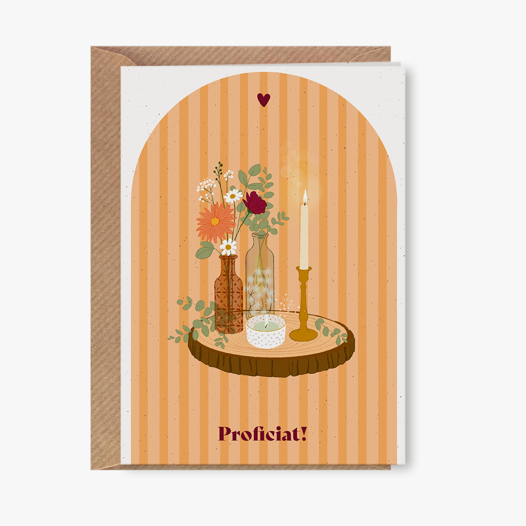 Onze kaarten worden lokaal gedrukt op FSC-gecertificeerd papier met een gewicht van 350 gram. Dit papier is niet alleen van hoge kwaliteit, maar ook milieuvriendelijk. Het wordt vervaardigd uit gerecycleerde papiervezels en organisch afval, zoals noten en fruit. Door deze samenstelling zijn er zichtbare spikkeltjes in het papier aanwezig, wat zorgt voor een extra natuurlijke uitstraling. Elke wenskaart wordt geleverd met een bijpassende geribbeld kraft envelop.