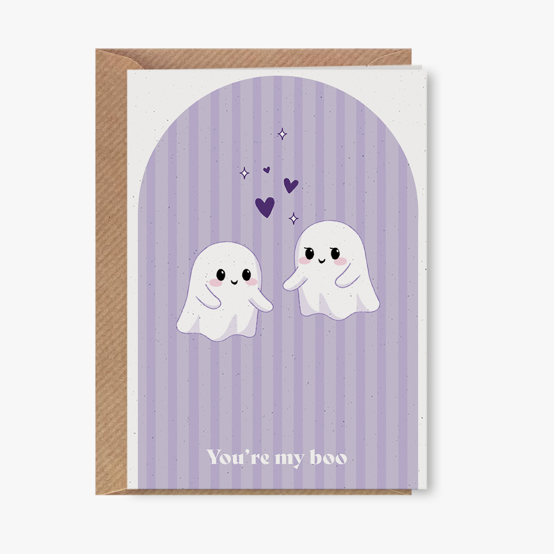Onze kaarten worden lokaal gedrukt op FSC-gecertificeerd papier met een gewicht van 350 gram. Dit papier is niet alleen van hoge kwaliteit, maar ook milieuvriendelijk. Het wordt vervaardigd uit gerecycleerde papiervezels en organisch afval, zoals noten en fruit. Door deze samenstelling zijn er zichtbare spikkeltjes in het papier aanwezig, wat zorgt voor een extra natuurlijke uitstraling. Elke wenskaart wordt geleverd met een bijpassende geribbeld kraft envelop.